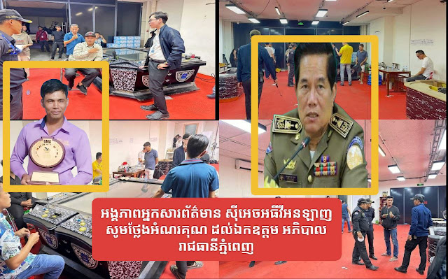 អង្គភាពអ្នកសារព័ត៌មានយើង សូមថ្លែងអំណរគុណ ចំពោះ ឯកឧត្តមអភិបាលរាជធានីភ្នំពេញ ដែលបានយកចិត្តទុកដាក់ តាមដានព័ត៌មាន ក្នុងការស្នើសុំ បង្ក្រាប ទីតាំងល្បែងស៊ីសង់ខុសច្បាប់