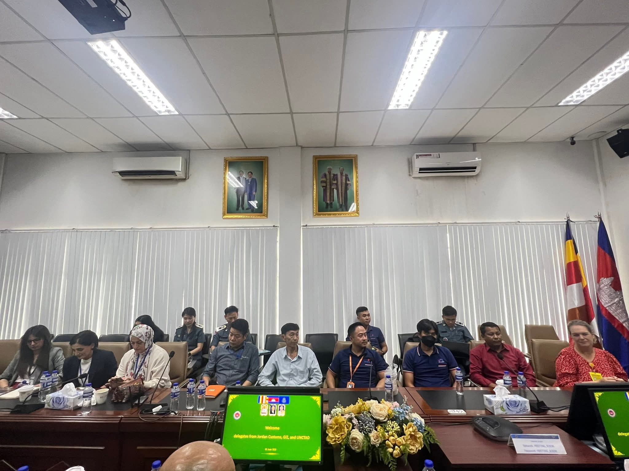 ក្នុងឱកាសនៃដំណើរទស្សនកិច្ចនេះ នៅព្រឹកថ្ងៃទី៣ ខែមិថុនា ឆ្នាំ២០២៥ នៅបន្ទប់ប្រជុំអគ្គនាយកដ្ឋានគយនិងរដ្ឋាករកម្ពុជាជាន់ទី១៨ លោកអគ្គនាយករង ផា អេងវ៉េង តំណាងដ៏ខ្ពង់ខ្ពស់របស់ ឯកឧត្តមបណ្ឌិត គុណ ញឹម រដ្ឋមន្ត្រីប្រតិភូអមនាយករដ្ឋមន្រ្តី អគ្គនាយកនៃអគ្គនាយកដ្ឋានគយនិងរដ្ឋាករកម្ពុជា បានអនុញ្ញាតឱ្យលោក Ayman Yahya Hamdan Alqudah ប្រធានគណៈប្រតិភូ អមដោយក្រុមអ្នកជំនាញការ GIZ និង UNCTAD បានចូលជួបសម្តែងការគួរសម និងពិភាក្សាការងារអំពីបទពិសោធន៍នៃការអនុវត្តកន្លងមក។